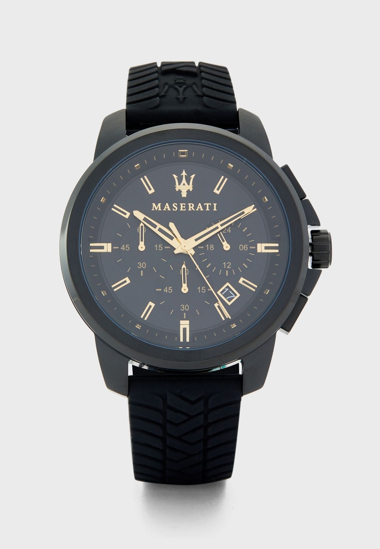 Maserati Successo Black Dial Black Rubber Strap Watch For Men - R8871621011