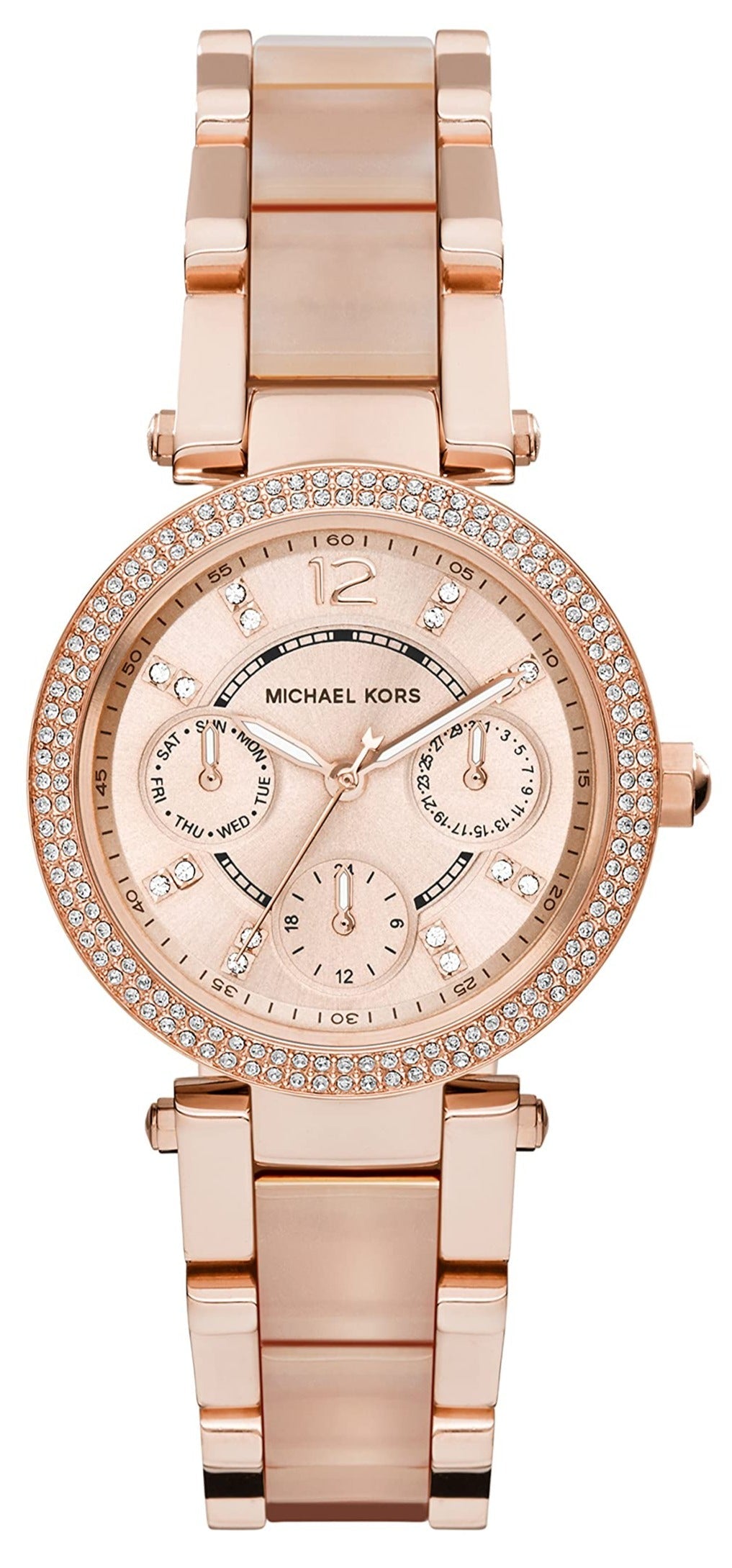 Michael Kors Parker Pink Dial Two Tone Steel Strap Watch for Women - MK6110