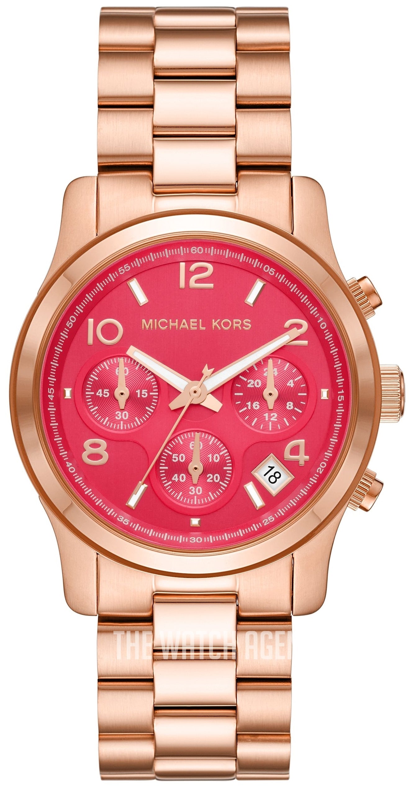 Michael Kors Runway Chronograph Pink Dial Rose Gold Steel Strap Watch For Women - MK7352