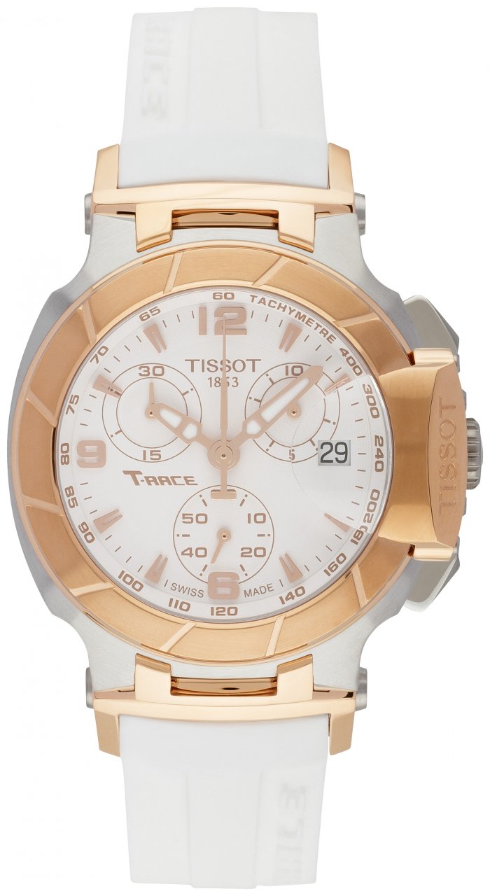 Tissot T Race Chronograph White Dial Pink Rubber Strap Watch for Women - T048.217.17.017.01