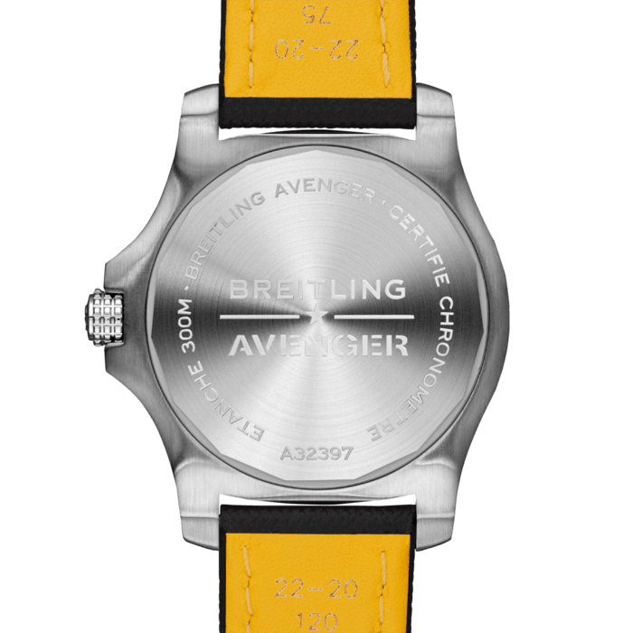 Bold, extremely robust and shock resistant, the Avenger Automatic GMT 43 features an additional red hand indicating a second time zone. As a true Breitling Avenger, it can be used wearing gloves and offers unrivalled safety and reliability to any airborne adventurer. The Avenger Automatic GMT 43 features a sturdy 43 mm stainless-steel case, black or white dial, and a choice of a stainless-steel bracelet or a black military leather strap that fits either a stainless-steel pin buckle or folding clasp. Thanks to its rugged bezel and its special grip pattern on the crown, the Avenger Automatic GMT 43 can be easily operated wearing gloves.