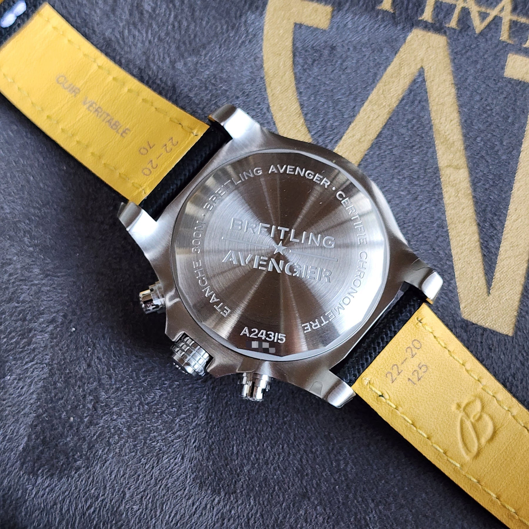- Breitling COSC Certified Calibre 24 automatic chronograph movement which beats at 28,800 vph, contains 25 jewels, and has an approximate power reserve of 42 hours.