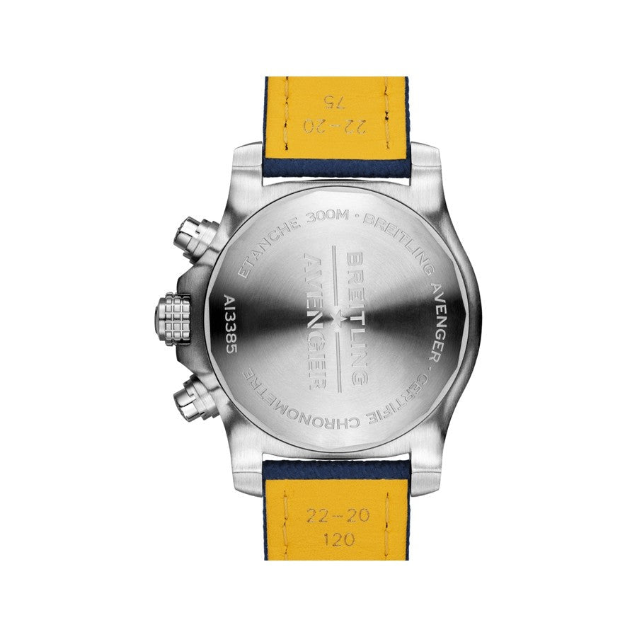 Bold, extremely robust and shock resistant, the Avenger Chronograph 43 is the most versatile and compact Avenger chronograph. As a true Breitling Avenger, it can be used wearing gloves and offers unrivalled safety and reliability to any airborne adventurer.