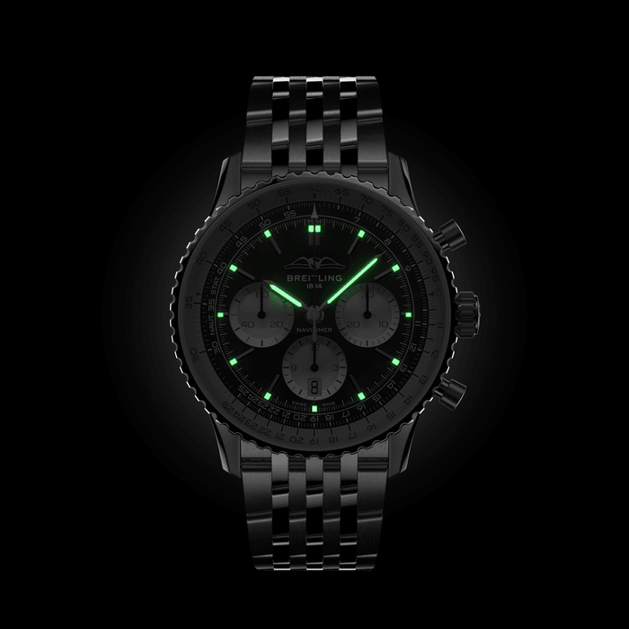 A modern take on Breitling’s original beloved pilot’s watch, the Navitimer B01 Chronograph is a vision of classic excellence.