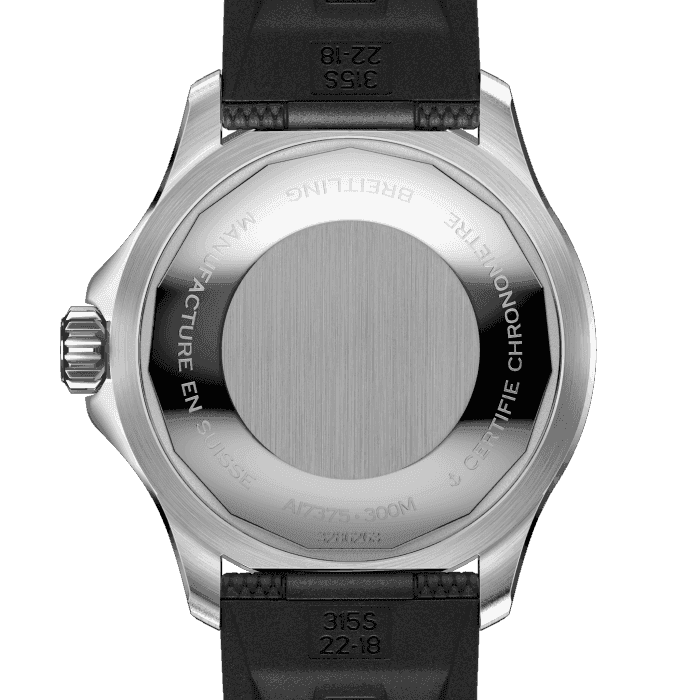 - Breitling calibre 17, COSC Certified, 28,000 vph (4Hz), 26 jewels, approximate power reserve of 38 hours.