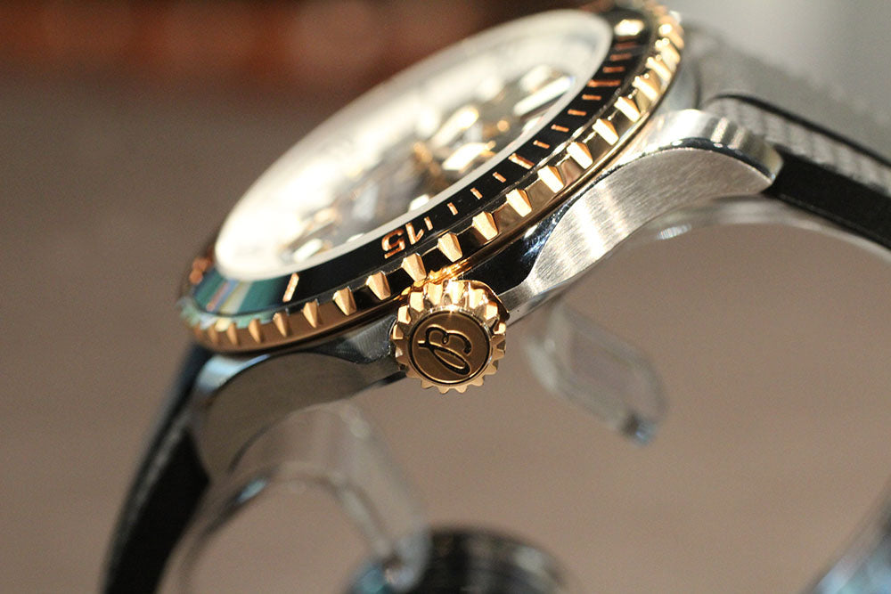 The new Superocean retraces the Slow Motion's celebrated design codes, while adding modern features, like a ceramic-inlayed bezel and brightly colored dials. Broad hands and indexes in luminescent Super-LumiNova® allow for easy readability underwater. The watch is water resistant to 300 m (1000 ft), as well as being shock-, sand- and saltwater-resistant. The bronze version uses a special alloy that has excellent resistance to corrosion, yet will still develop a subtle patina over time that makes the watch even more unique. The two strap options (rubber and metal bracelet) have a folding clasp that allows for micro-adjustments of up to 15 mm for easy wear over rashies and wetsuits. Its scratch-proof ceramic inlayed bezel will never wear or fade. For safety, the bezel is uni-directional on most sizes and bi-directional with a patented lock on the 46 mm. Best of all, this is no longer strictly a dive watch—surf with it, swim with it, hit the beach bar with it, then wear it out to dinner. The Superocean perfectly balances the nostalgia of its heritage with a fresh new look.