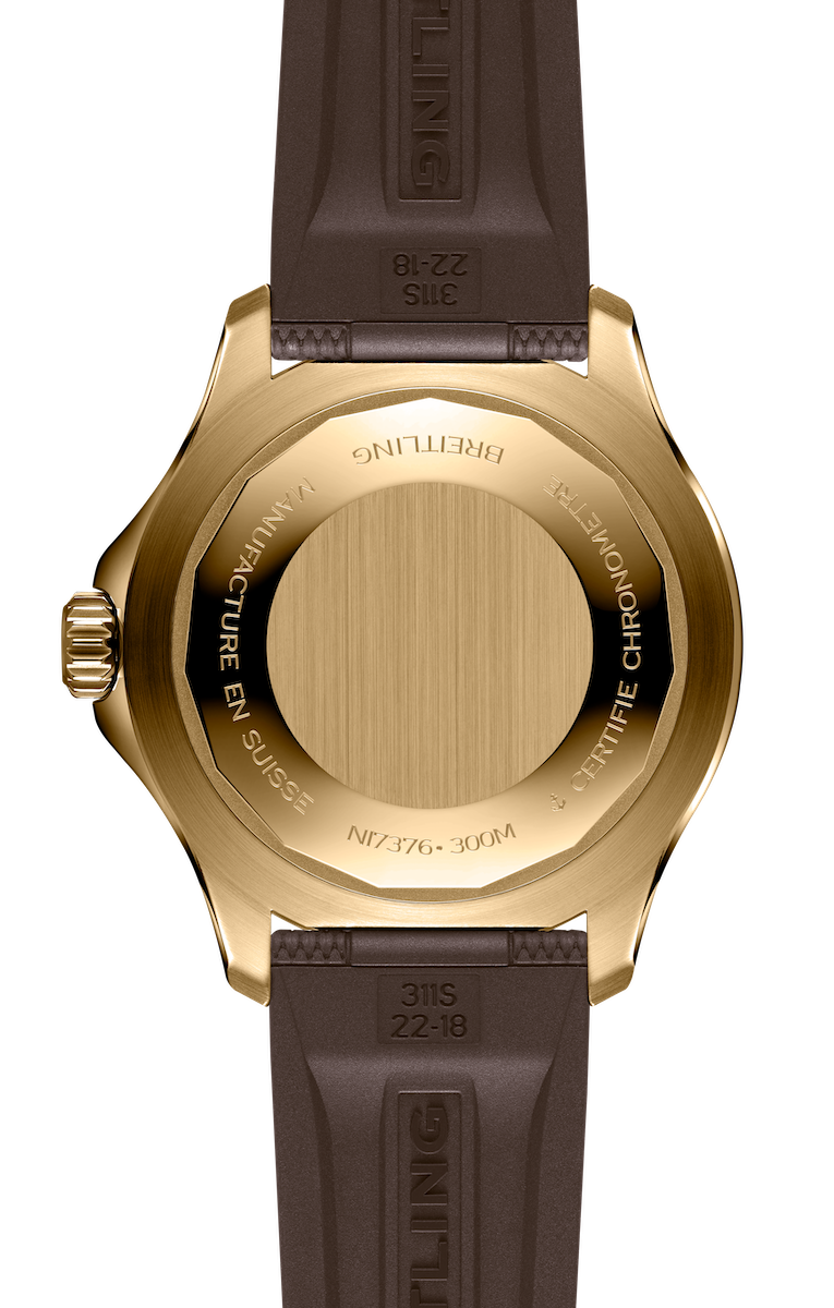 Performance and style for all your water-based pursuits. In the 1960s, the new sport of scuba diving was all the rage. For divers, timing was everything, and Breitling set out to give them the most clear-cut dive watch possible by eliminating any feature that didn’t support their lifesaving needs underwater. This pared-down watch was named the Slow Motion. What remained were clean lines, chunky luminescent indexes, squared-off hands and a high-contrast dial ring, all aimed at maximum legibility. Practical, yes. But what people really fell in love with was the look. The new Superocean retraces the Slow Motion's celebrated design codes, while adding modern features, like a ceramic-inlayed bezel and brightly colored dials. Broad hands and indexes in luminescent Super-LumiNova® allow for easy readability underwater. The watch is water resistant to 300 m (1000 ft), as well as being shock-, sand- and saltwater-resistant. The bronze version uses a special alloy that has excellent resistance to corrosion, yet will still develop a subtle patina over time that makes the watch even more unique. The two strap options (rubber and metal bracelet) have a folding clasp that allows for micro-adjustments of up to 15 mm for easy wear over rashies and wetsuits. Its scratch-proof ceramic inlayed bezel will never wear or fade. For safety, the bezel is uni-directional on most sizes and bi-directional with a patented lock on the 46 mm. Best of all, this is no longer strictly a dive watch—surf with it, swim with it, hit the beach bar with it, then wear it out to dinner. The Superocean perfectly balances the nostalgia of its heritage with a fresh new look.