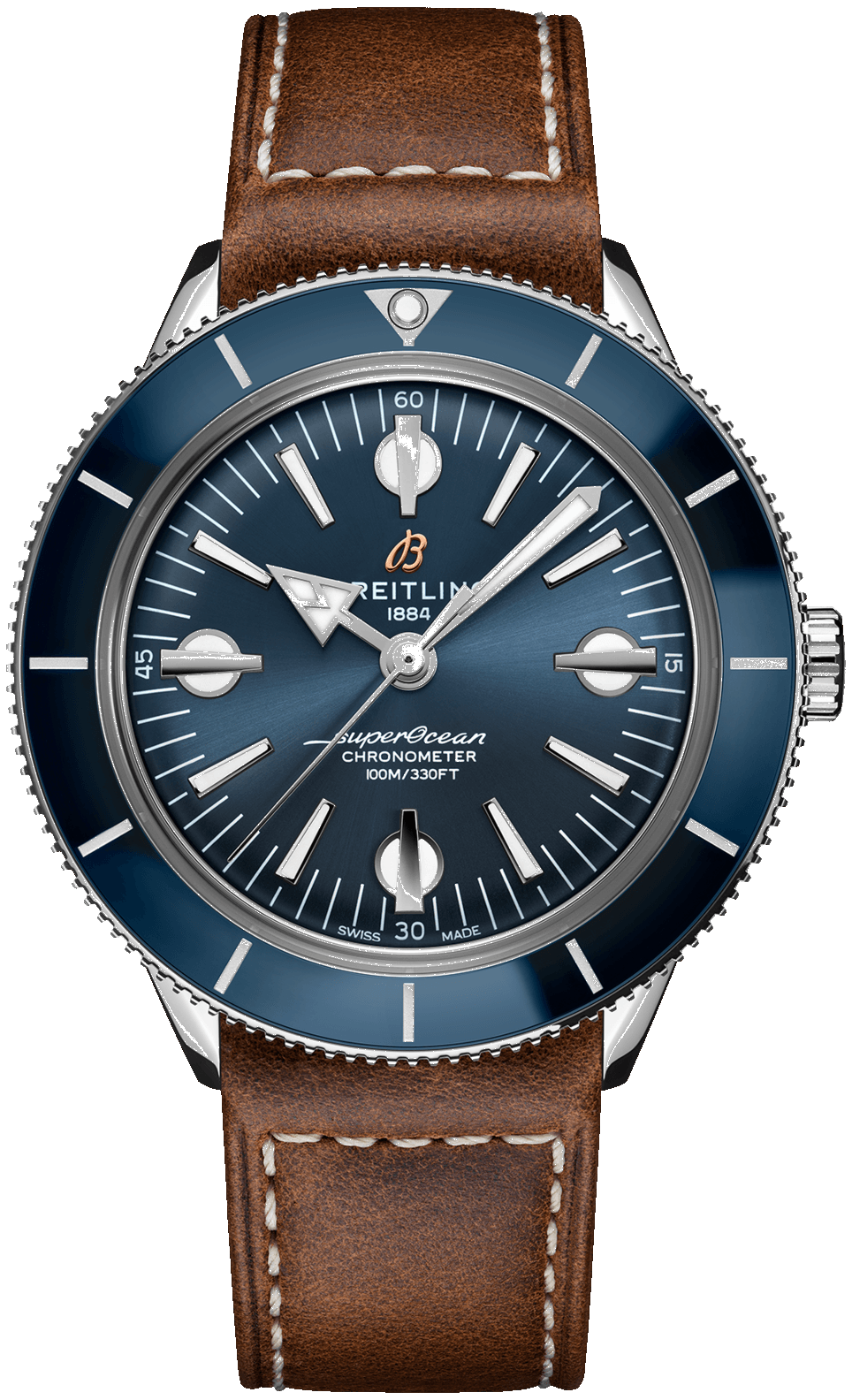 Paired with a mesh bracelet or a black, brown or gold calfskin leather strap that fits both a stainless-steel pin or folding buckle, the Superocean Heritage ‘57 is powered by the Breitling Caliber 10, a COSC-certified chronometer.