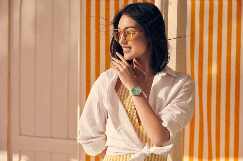 Breitling’s colorful tribute to the original SuperOcean, and the very essence of style at sea. The Superocean Heritage ’57 Pastel Paradise Capsule Collection reuses several design elements from the original 1957 SuperOcean such as the concave ceramic bezel, oversized indexes and arrow-shaped hour hand. But what started as a neat 1950s divers’ watch has evolved into a sleek and fresh watch with a bit of sass and a lot of versatility. Think playsuits, pink flamingos, and headbands setting off perfectly flipped hair. Imagine a carefree and confident lady enjoying a seaside resort, sporting big sunglasses and swinging a straw handbag.