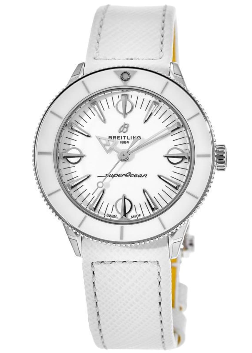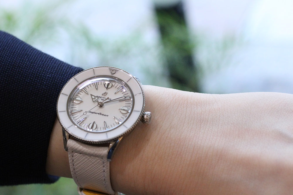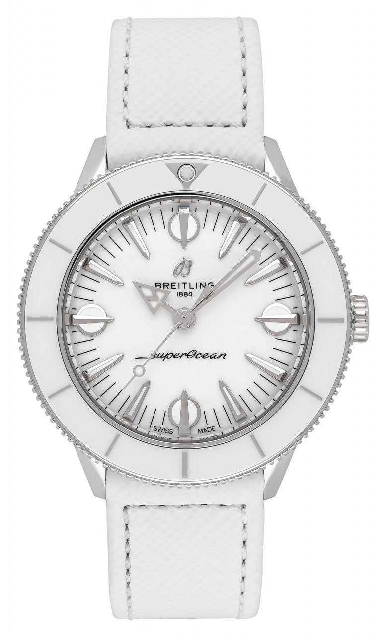 Breitling’s latest seasonal creation for women is a fresh reincarnation of a classic. What started as a 1950s divers’ watch has evolved into a fashionable timepiece for women ready to jump into summer! The Superocean Heritage ’57 Pastel Paradise Capsule Collection is all about color, proportion, and of course substance. Its 38-mm stainless-steel case features a rotating bezel and bold indices. It’s the very essence of summer style.