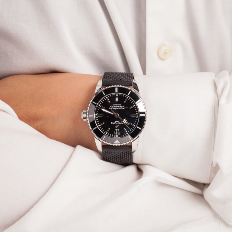 Inspired by the original Superocean from the 1950s, the Superocean Heritage combines iconic design features with a modern touch. Sporty and elegant, the Superocean Heritage is a true embodiment of style at sea. Featuring the iconic triangular-shaped hands as well as a unidirectional bezel with a polished ceramic ring, the Superocean Heritage is an elegant looking diver’s watch.