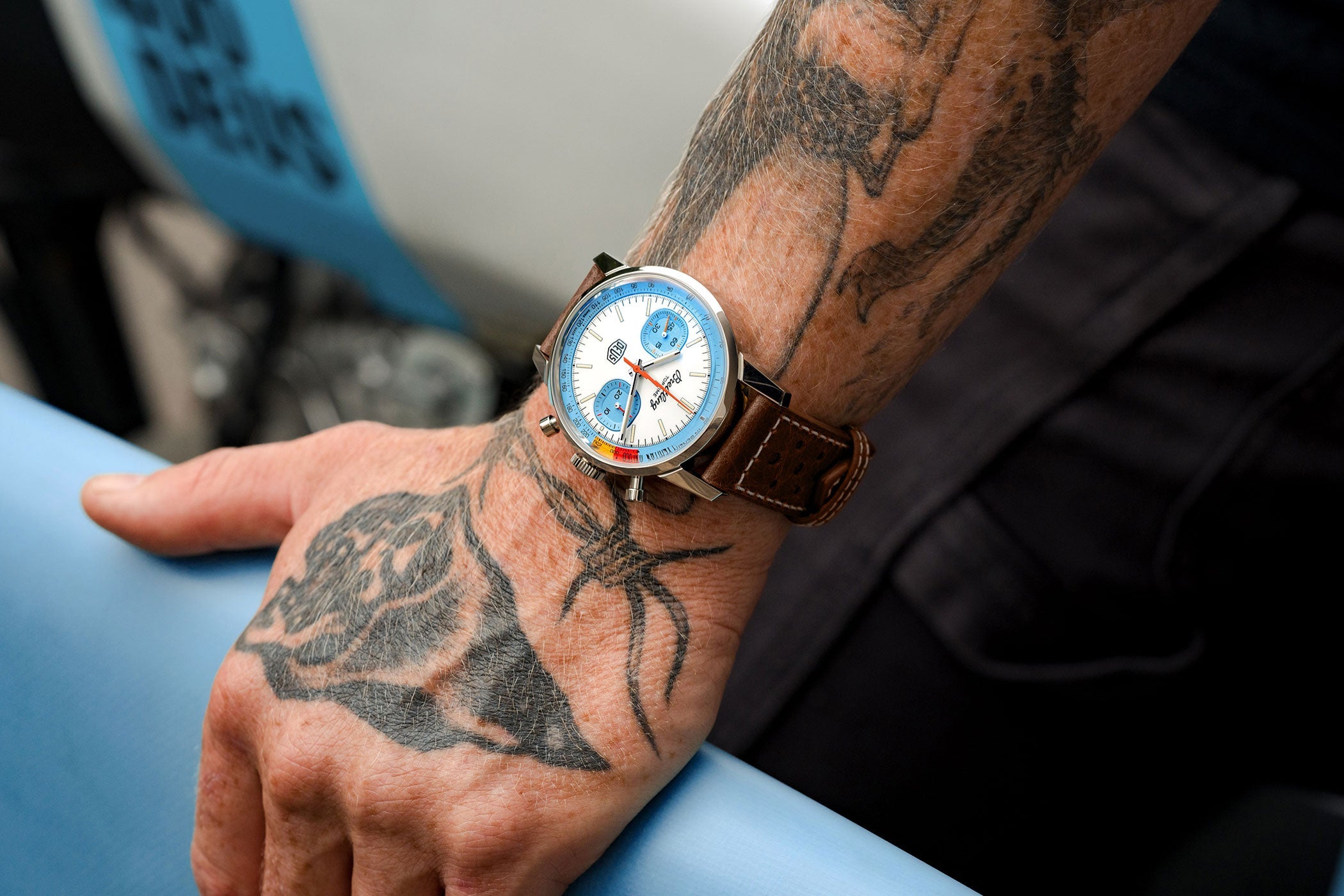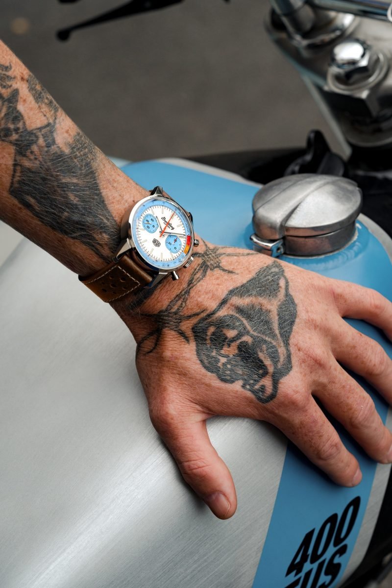Co-designed with Australian lifestyle brand Deus Ex Machina, the custom motorcycle and surf outfitter, the Top Time Deus is a nod to Breitling’s original 1960s watch and a true tribute to the nomad spirit. Originally launched in the 1960s, the Top Time had a clear mission: to suit the needs of “the young and active professionals” with a range of “ultra-modern chronographs”. The sports watch appealed not only to that demographic, but also to those attracted by its bold lines. The Top Time Deus will appeal to bikers, boarders and backpackers, all looking for the freedom to explore the world their own way, at their own pace. Featuring a 41-millimetre stainless-steel case matched to a brown racing-themed calfskin leather strap, the Top Time Deus features yellow and orange details, a lightning-bolt-shaped chronograph hand on top of squircle-shaped chronograph counters, Deus’ adage “In benzin veritas” and a retro-looking motorcyclist in rally racer mode - by Deus creative director Carby Tuckwell - engraved on the caseback. Limited to 2000 pieces, this Top Time is powered by the Breitling Caliber 23, a COSC-certified chronometer.