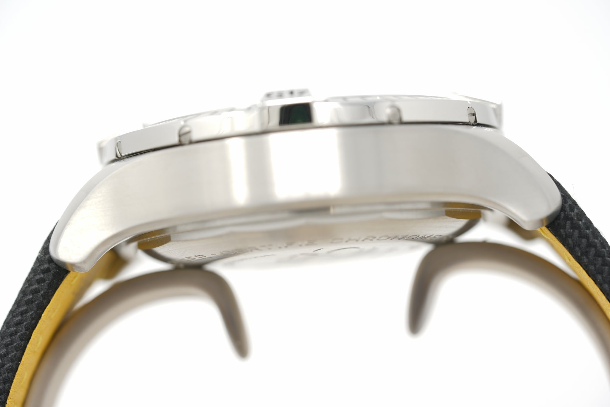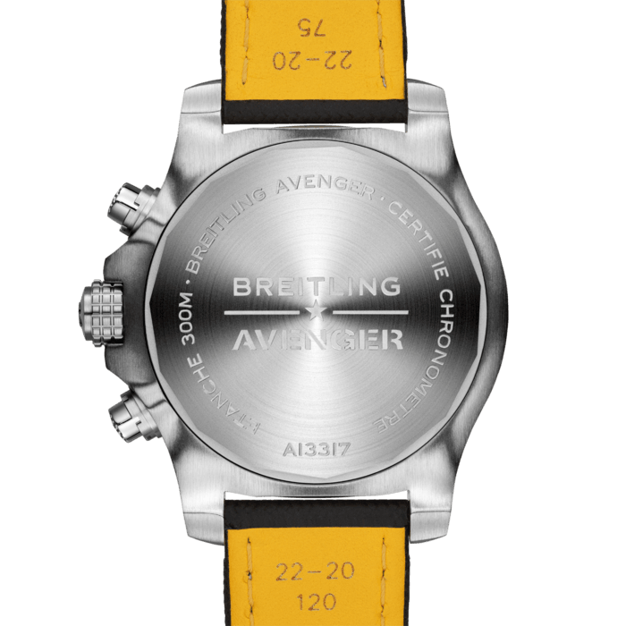 Bold, extremely robust and shock resistant, this Breitling Avenger is a tribute to the Swiss Air Force Team, celebrating the 55th anniversary of Breitling’s home country Air Force Team. The Avenger Chronograph 45 Swiss Air Force Team Limited Edition features a sturdy 45mm stainless-steel case, black dial with the colorful Swiss Air Force Team logo and black military leather strap with a stainless-steel pin buckle. Thanks to its rugged bezel and its special grip-pattern on the crown & chronograph pushers, the Avenger Chronograph 45 Swiss Air Force Team Limited Edition can be easily operated wearing gloves. This special edition is limited to 550 pieces.