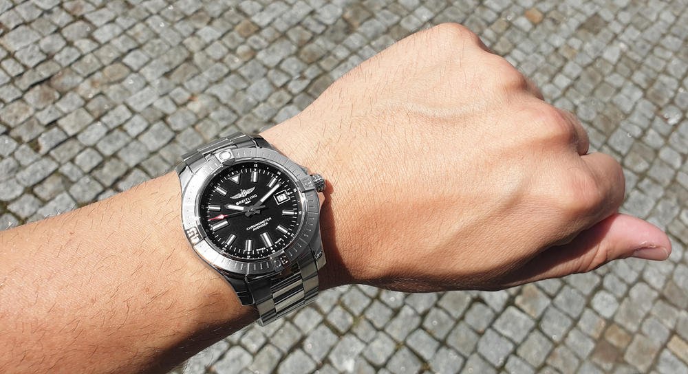 The Breitling Avenger Automatic 43mm is bold and reliable. Aesthetically pleasing to the eye with its clean black dial featuring Super-LumiNova hands and indices, the rugged bezel and special grip-pattern on the crown offer easy operation to any airborne adventurer. Housed in a stainless steel case and fitted on a matching metal bracelet that provides extra comfort for wearing on the wrist. Self-winding mechanical movement powered by Breitling 17 Calibre, this watch is for the daring gentleman.