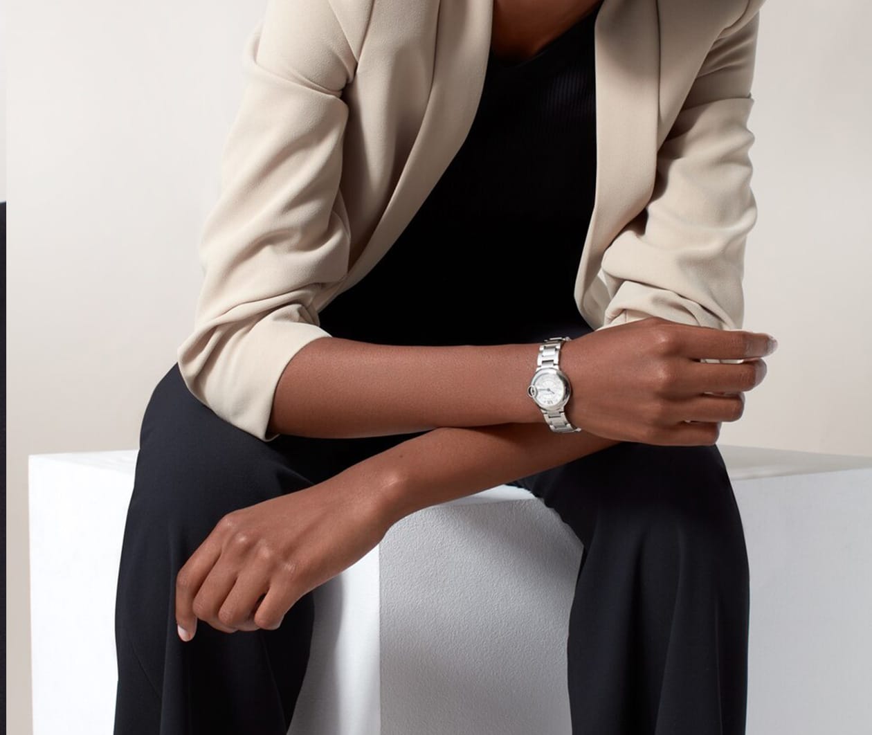 Floating like a balloon and as blue as the cabochon safely nestled in its side, the Ballon Bleu watch by Cartier adds a dash of elegance to male and female wrists alike. Roman numerals are guided on their path by a deep blue winding mechanism. The convex curves of the case, guilloché dial, sword-shaped hands, and polished or satin-finish links of the bracelet ensure that the Ballon Bleu watch by Cartier floats within the world of Cartier watchmaking.
