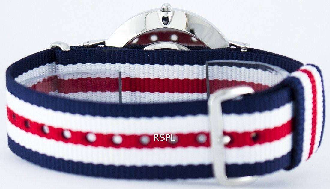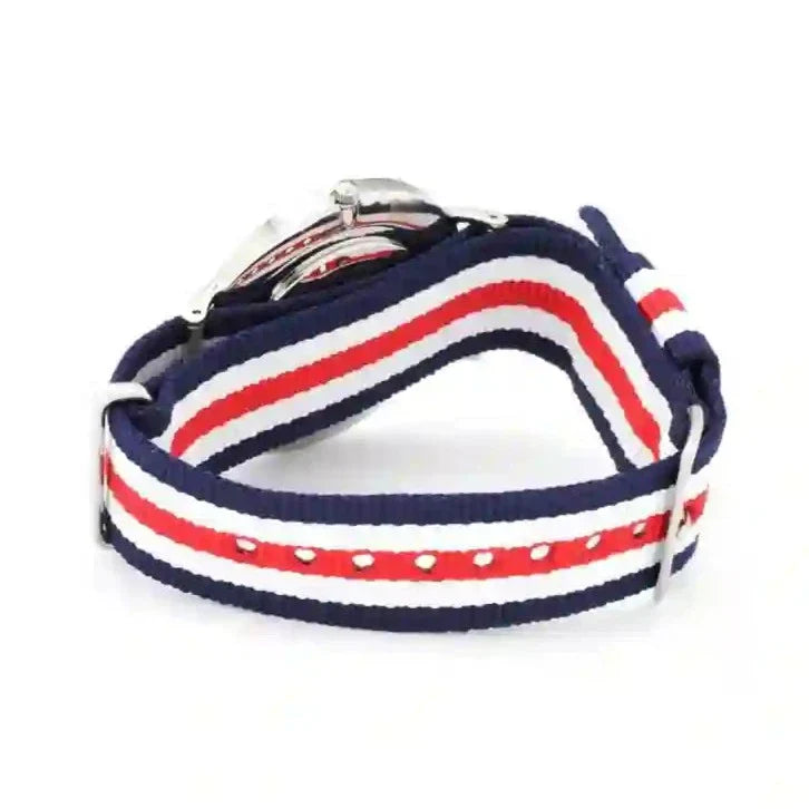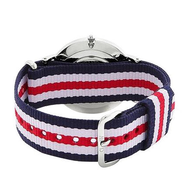 This watch from Daniel Wellington features a blue, white and red color with a high-quality strap made of NATO (polyester) strap and a stainless steel case measuring 40 mm and 6 mm thick, protected by a layer of strong mineral glass and a reliable quartz movement. The watch is water resistant to 30 metres