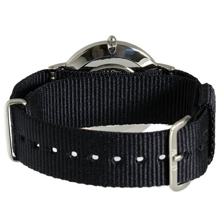Silver Steel Case: The silver steel case adds a classic touch to the watch. Its glossy finish harmoniously complements the black NATO strap, creating exceptional visual balance.
