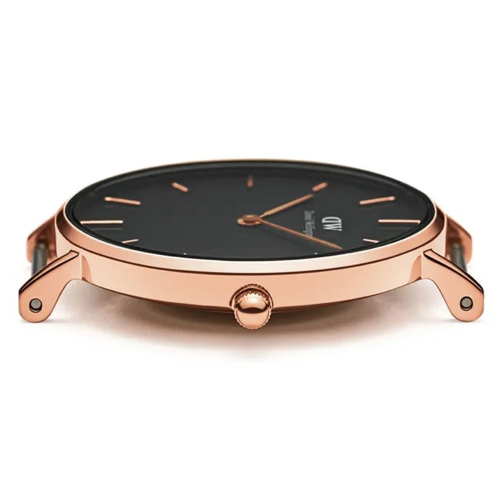 The Petite Dover, with its all-white strap, captures the essence of summer. This minimalistic wristwatch features a black dial and details in rose gold. Let the memories of summer rest delicately on your wrist for the seasons to come.