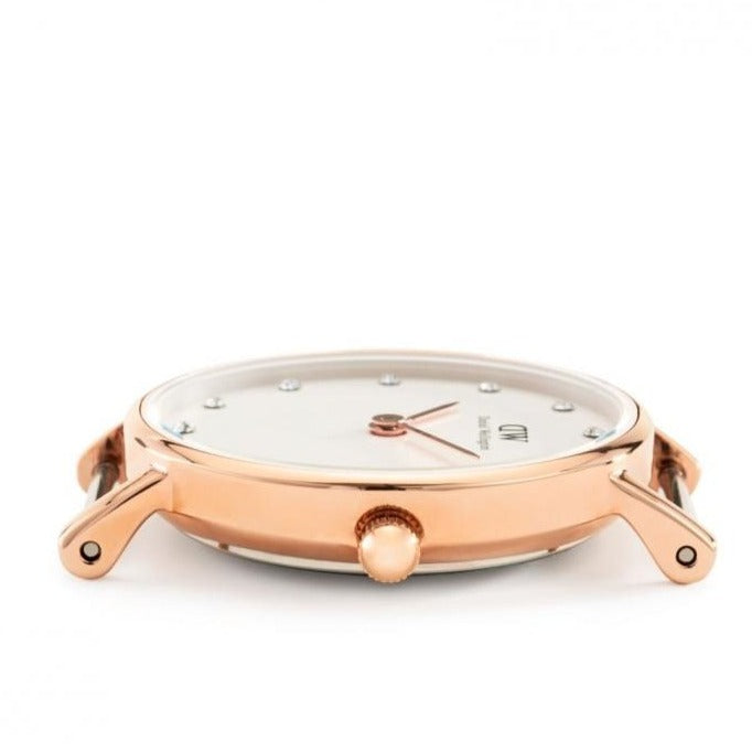 The DANIEL WELLINGTON DW00100065 is a solid women's watch that you can wear everywhere you wish. Its design consists of a round dial with a diameter measuring 26 mm, which is also protected by a mineral cover. This one is an analog version with moving hands. The watch's high-quality Quartz technology is synonymous with that it'll show accurate time. Its strap is made out of textil, which looks stylish and is comfortable to wear.
