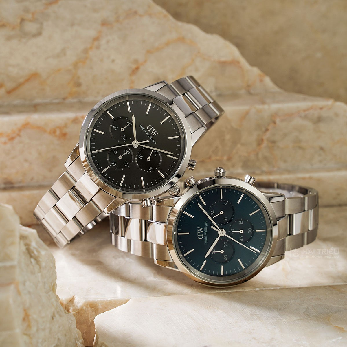 Daniel Wellington men's watch from the Iconic Chronograph collection. The clock movement is quartz with chronograph functions and indication of the 24h per day. The watch case is made of steel, diameter 42 mm. The bracelet is made of steel. The dial is blue. The water resistance is 5 atm / 50 meters. Reference: DW00100644