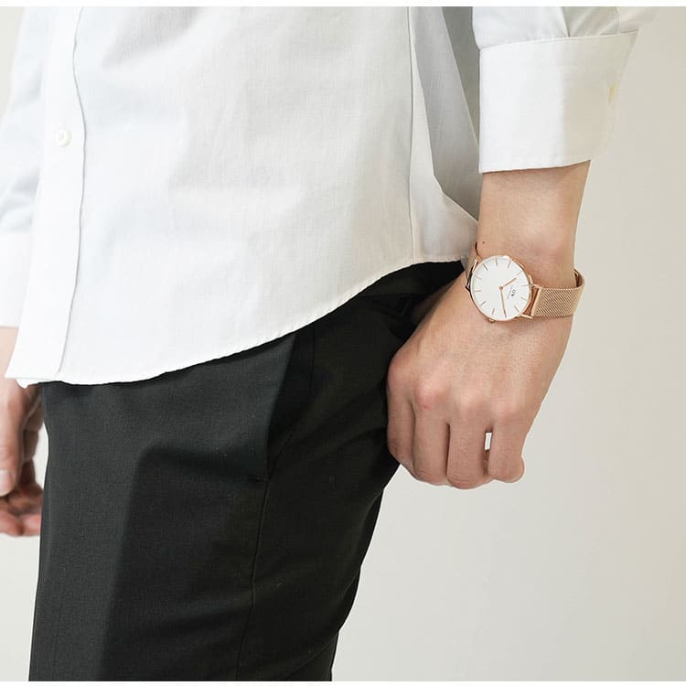 Daniel Wellington Watch Petite Melrose White 36mm DW00100305. The Daniel Wellington watches Petite collection is made by stainless steel, and making the mesh bracelet involves cutting a special type of chain mail to the desired length and width to attain the perfect balance between density and thread count. The resulting Petite is our sleekest timepiece to date, and truly reflects the minimalistic design approach of Daniel Wellington.