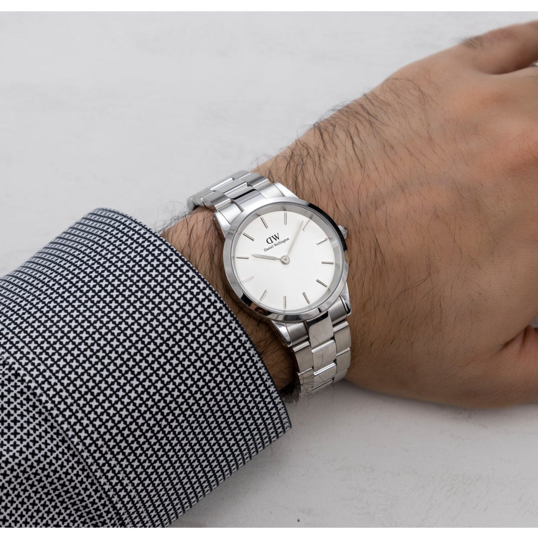 The allure of the Daniel Wellington Iconic Link lies in its meticulous design and thoughtful details. The vibrant silver finish captures the light, exuding a modern yet timeless charm that enriches any outfit. Its minimalistic white dial, framed by a sleek stainless steel case, represents the perfect balance between simplicity and sophistication, ensuring it remains a versatile accessory for any occasion. As a unisex watch, it transcends traditional gender norms, offering a universal appeal that makes it an ideal gift for yourself or someone special.