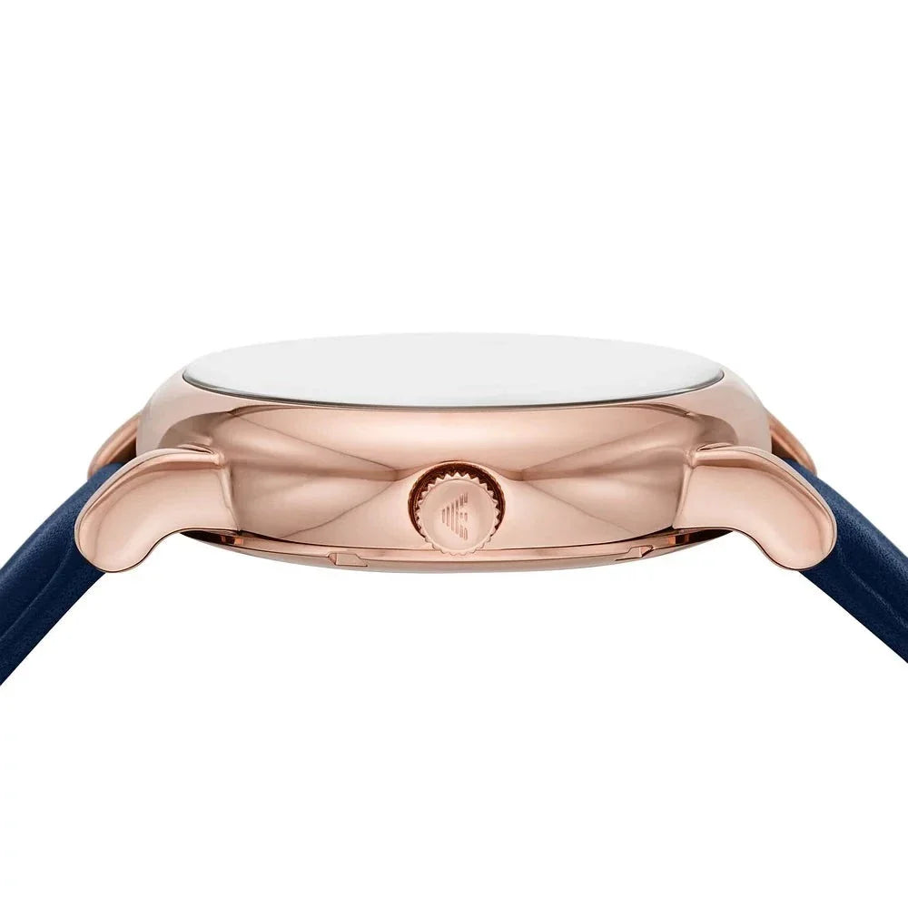 Emporio Armani watch with 43mm case automatic movement Blue sunray dial with blue leather band