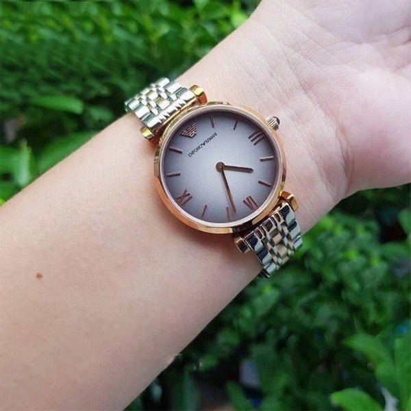 Emporio Armani Gianni T Bar Grey Dial Two Tone Stainless Steel Watch For Women - AR1725