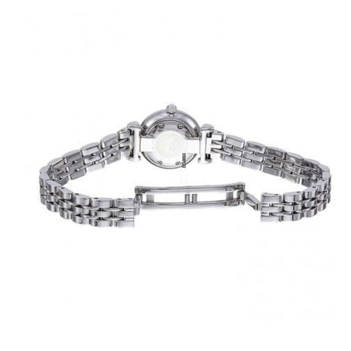 - Five-row stainless steel bracelet band with deployant-buckle closure