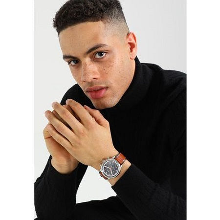 Fossil FS-5414 Goodwin Leather Strap Men’s Watch . The case is made out of Silver Stainless Steel with a Silver Bezel, which stands for the high quality of the item, it has Blue Dial. This model has got 50 meters of water resistance. it can be worn in scenarios where it is likely to be splashed but not immersed in water and will be fine in rain.