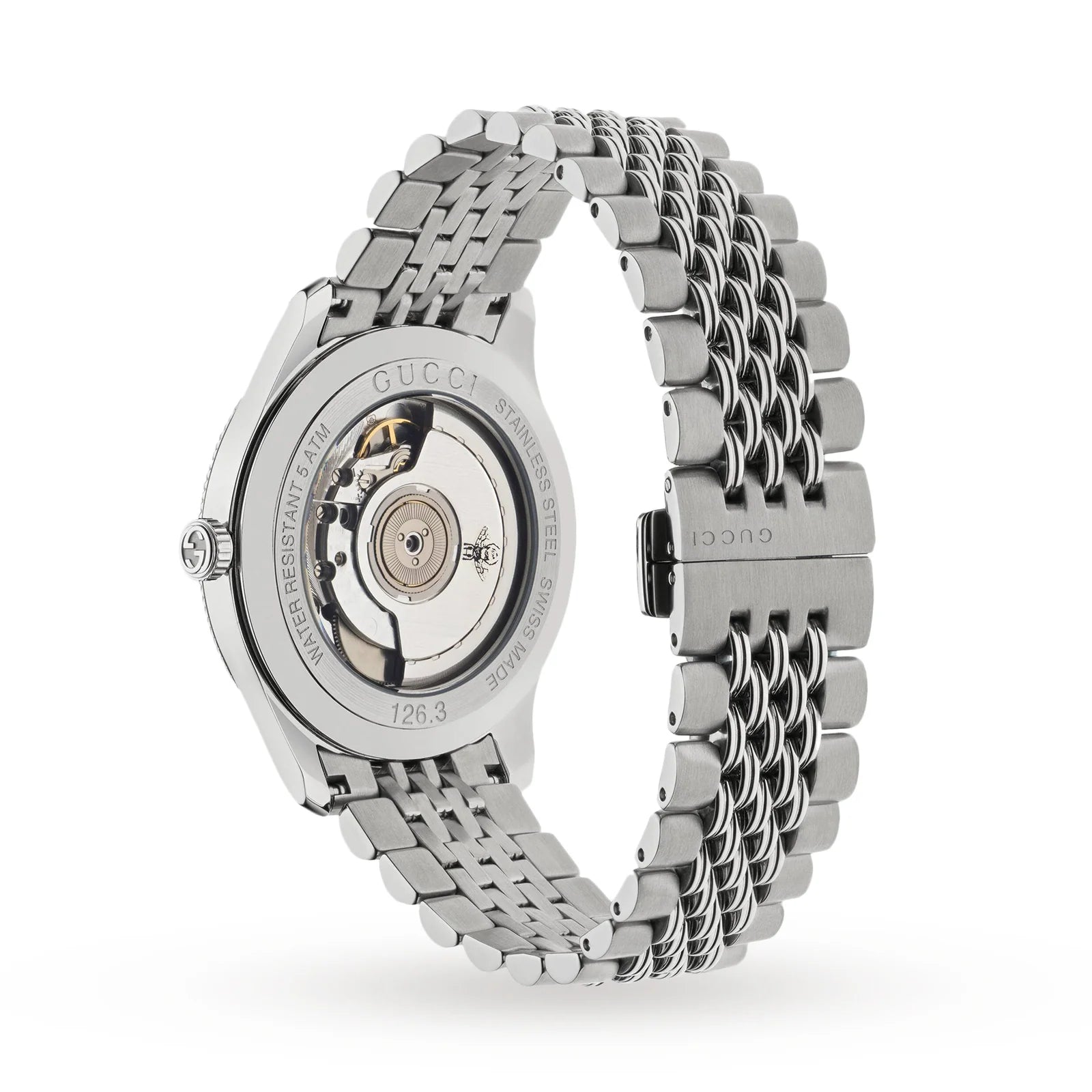Gucci G-Timeless watch returns every season in reworked iterations that draw on the runway. Dreamt up by Alessandro Michele, nature-enthused emblems such as the star, the bee and the cat have become an integral part of the Italian brand, and you'll find them in place of hour markers on the guilloc hé dial of this watch. Powered by Swiss quartz movement, it’s encased in stainless steel and fitted with bracelet strap – a classic combo you'll turn to time and time again.