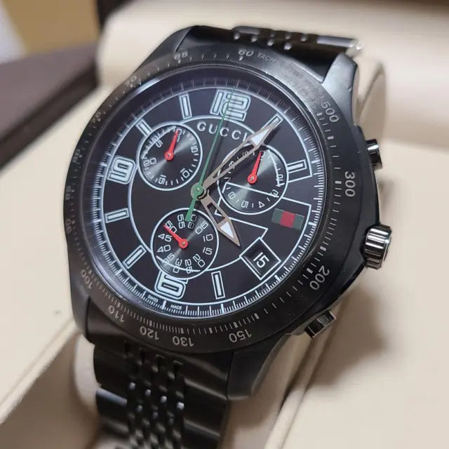 This luxurious Gucci G Timeless watch features a sleek black dial, complemented by a black steel strap. Effortlessly stylish and versatile, this watch is perfect for any occasion. With impeccable quality and design, it is a must-have for any fashion-forward man. Upgrade your style with the YA126202.