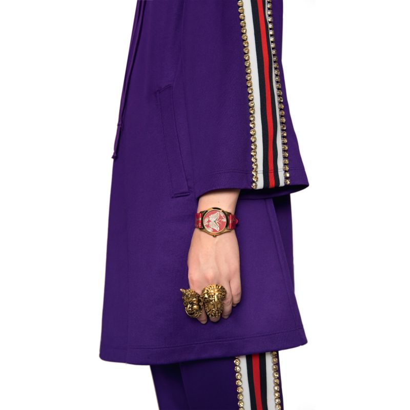 Gucci G-Timeless YA1264054 is a beautiful and eye-catching Ladies watch from G-Timeless collection. Case is made out of PVD Gold plated and the Red dial gives the watch that unique look.