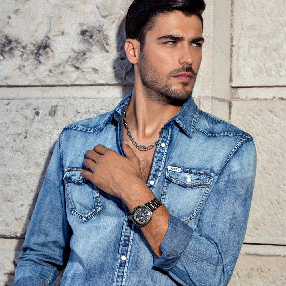 This headliner is sure to steal the show, it has a unique rounded square case design with screw details and a textured multi-function dial with ombre effect.
