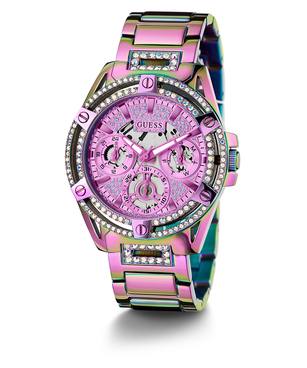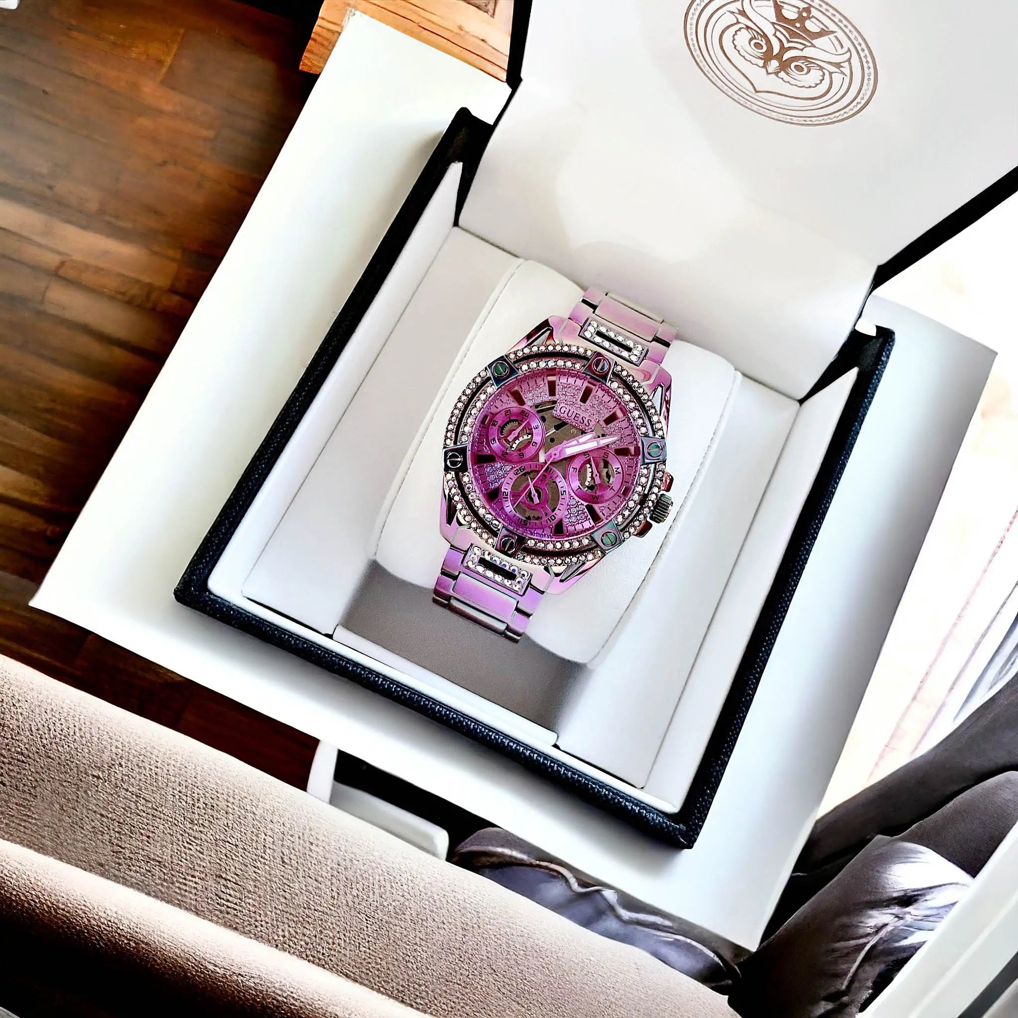 This Guess Women's 40mm Purple PVD Quartz Watch GW0464L4 is perfect for the modern, sophisticated woman. Crafted with a luxurious purple PVD bracelet and quartz movement, this watch offers superior performance. Plus, its round shape and elegant purple dial colour make it an eye-catching statement piece. Boasting 30m water resistance, this timepiece is sure to become a trusted companion for years to come.