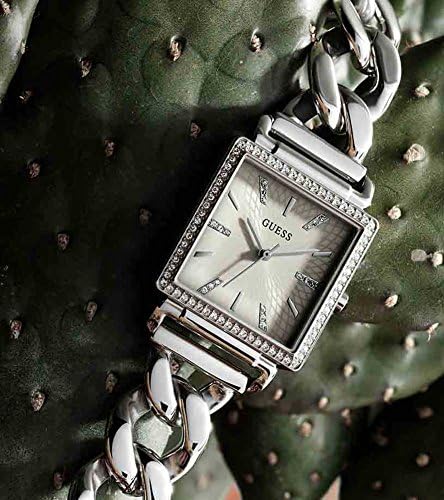 The GUESS Vanity Stainless Steel Bracelet Women's Watch is a fashionable timepiece that is perfect for any occasion. Featuring a sleek stainless steel bracelet and case, this watch is both durable and stylish. The crystal-studded bezel adds a touch of glamour to the design, making it perfect for dressing up or down.