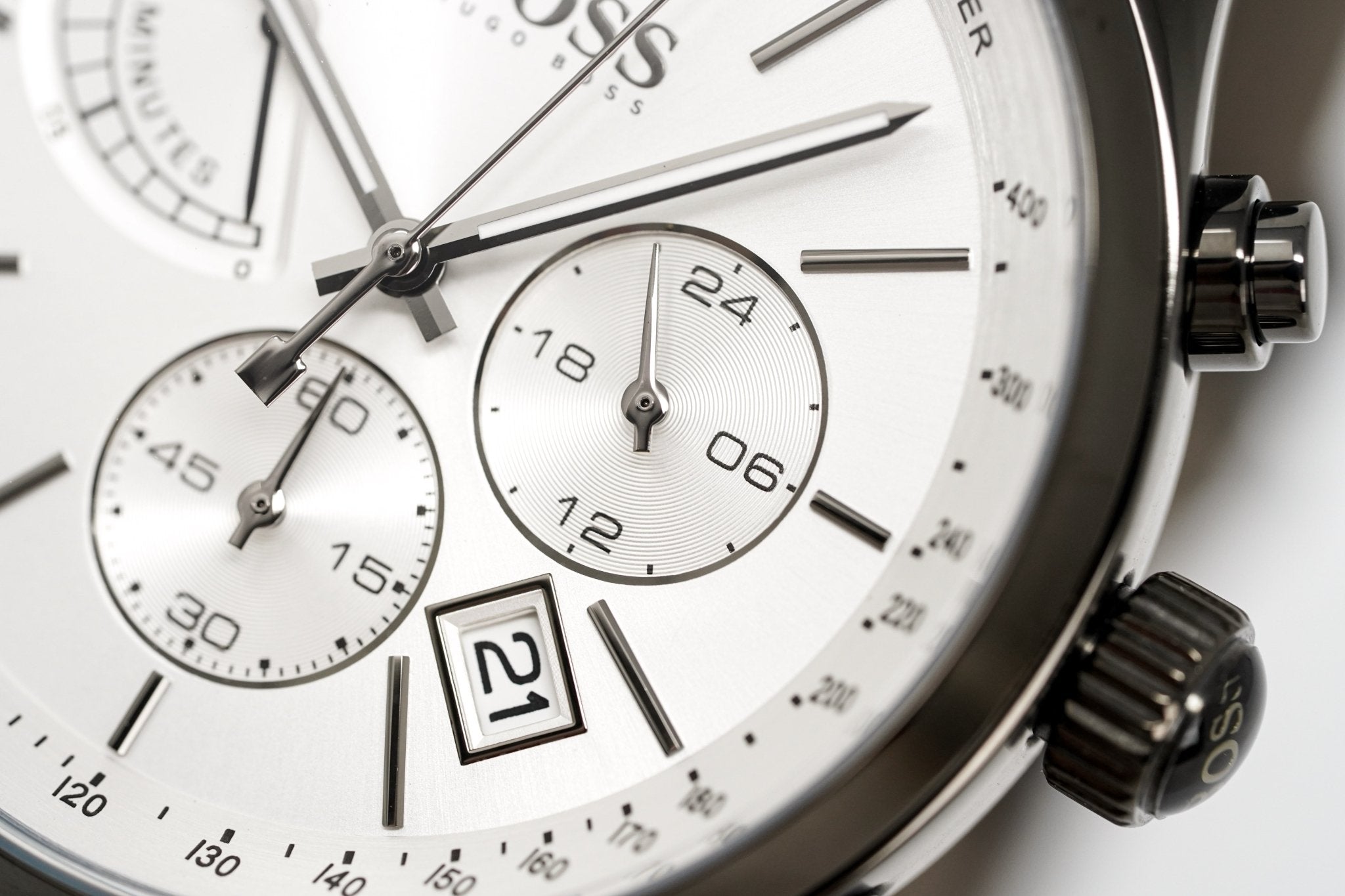 Japanese Made Quartz Chronograph Movement. Running Seconds. 30 Minute Counter. 24 Hour Indicator. Date.