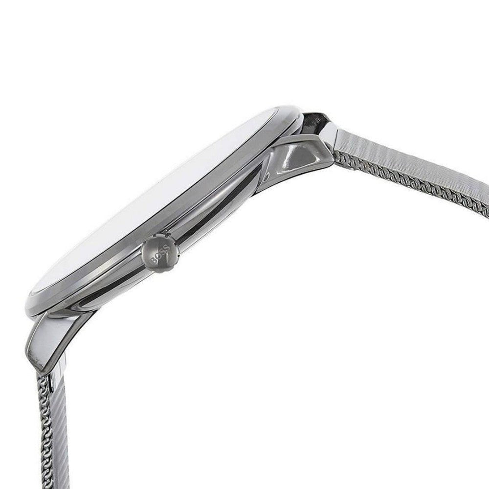 The Hugo Boss Horizon HB1513734 wristwatch has a stylish and modern look. The large 40 wide dial has a blue background and slim stylish dark gray hands and indexes, and the color continues on the watch body and steel mesh bracelet. The thickness of the body is only 6.4 mm, which makes the Horizon very comfortable on the wrist. The width of the bracelet attachment point is 20 mm. Hugo Boss watches come with a 2-year warranty and are delivered in the manufacturer's original packaging.