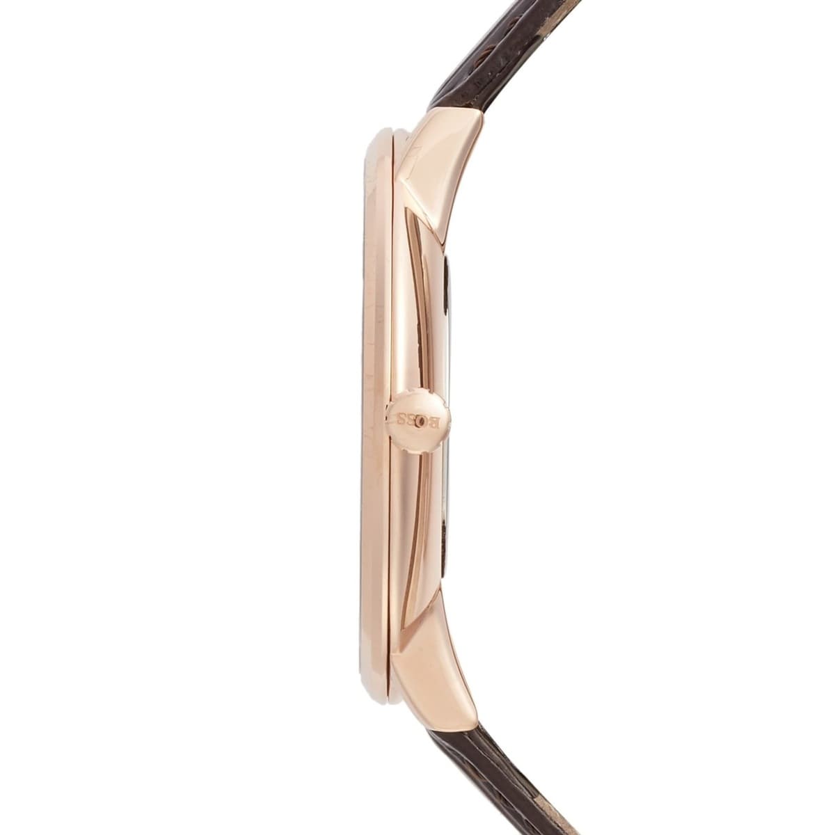 This BOSS watch offers a daywear iteration of elegant style with a deep blue dial and croc-embossed leather strap. Copper-tone hardware offsets the stunning piece.