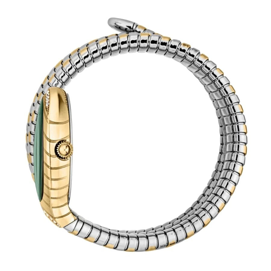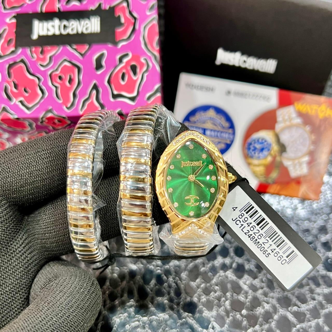 Elevate your style with the Just Cavalli Classico Lungo watch, designed for women who appreciate elegant details. Featuring a captivating green dial paired with a two-tone steel strap, this timepiece effortlessly blends sophistication and versatility. Its sleek design ensures it complements both casual and formal looks, making it a perfect everyday accessory. Durable and chic, this watch is a statement of timeless fashion and modern flair.