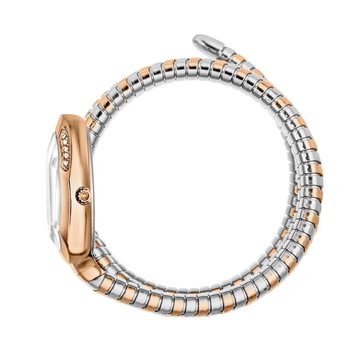 - Band Material: Stainless Steel, Bezel material: Stainless Steel, Bezel Colour: Rose Gold, Band Width: 5 mm, Band Colour: Two Tone