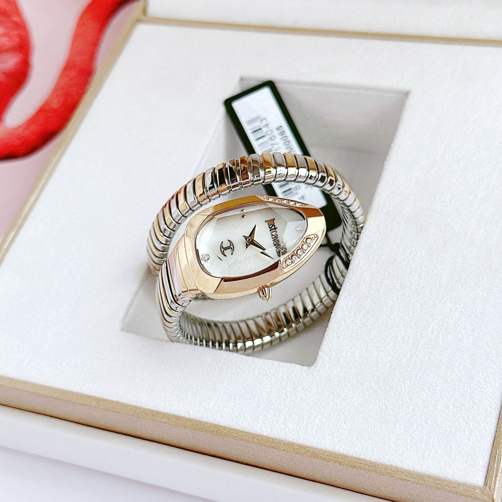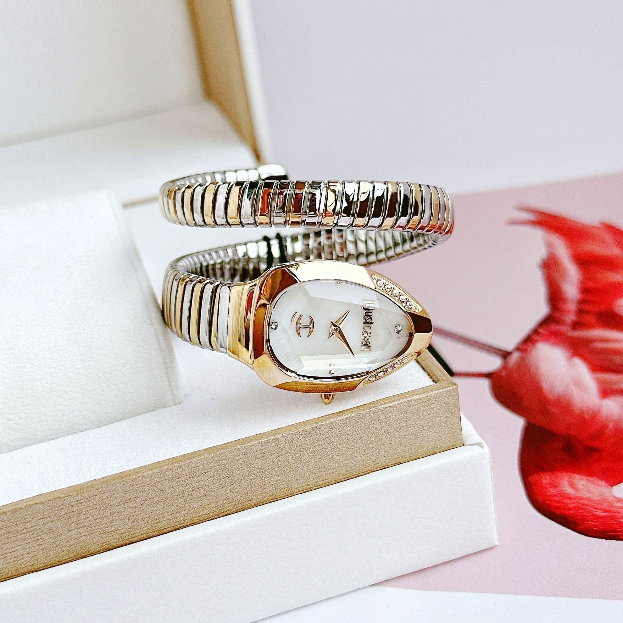 Elevate your style with the Just Cavalli Serpente Metallica watch, designed for women who appreciate bold elegance. Featuring a mesmerizing mother of pearl dial and a striking two-tone steel strap, this timepiece perfectly blends sophistication with modern flair. Its durable construction ensures lasting wear, while the unique design captures attention effortlessly. Make every moment stylishly unforgettable with this distinctive accessory.