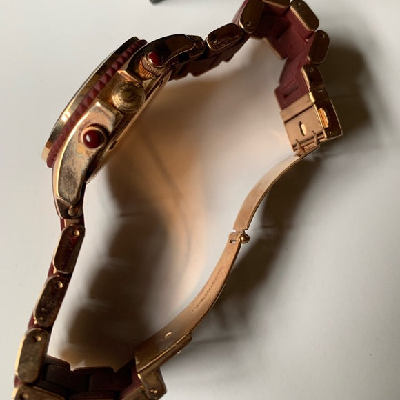 Experience the bold and vibrant energy of the Marc Jacobs Rock Chronograph Watch. Featuring a striking red dial and matching silicone strap, this watch is the perfect accessory for any confident and stylish woman. With its reliable chronograph function, you'll never miss a beat. Elevate your look and make a statement with this must-have timepiece.