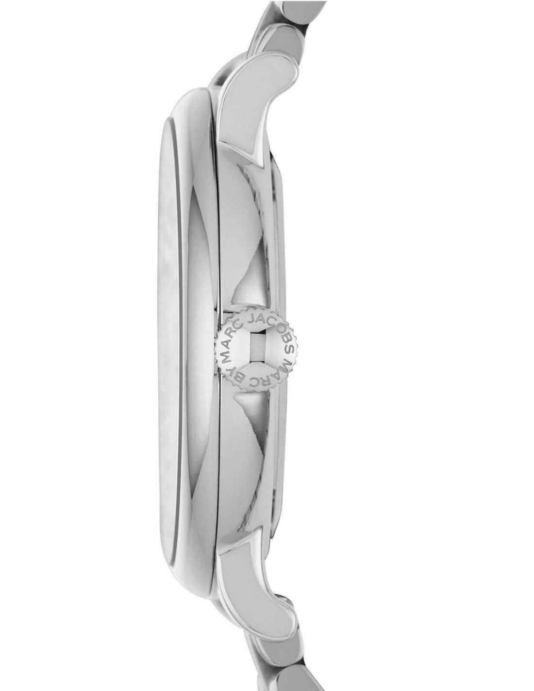 Stainless steel case with a stainless steel bracelet. Fixed stainless steel bezel. Silver sunray dial with silver-tone hands and index hour markers. An Arabic numeral appears at the 12 o'clock position. Dial Type: Analog. Quartz movement. Scratch resistant mineral crystal. Pull / push crown. Solid case back. Case diameter: 26 mm. Case thickness: 7 mm. Round case shape. Band width: 14 mm. Deployment clasp. Water resistant at 50 meters / 165 feet. Functions: hour, minute, second. Casual watch style. Marc By Marc Jacobs Peggy Silver Sunray Dial Stainless Steel Ladies Watch MBM3404.| Model: | MBM3404 |