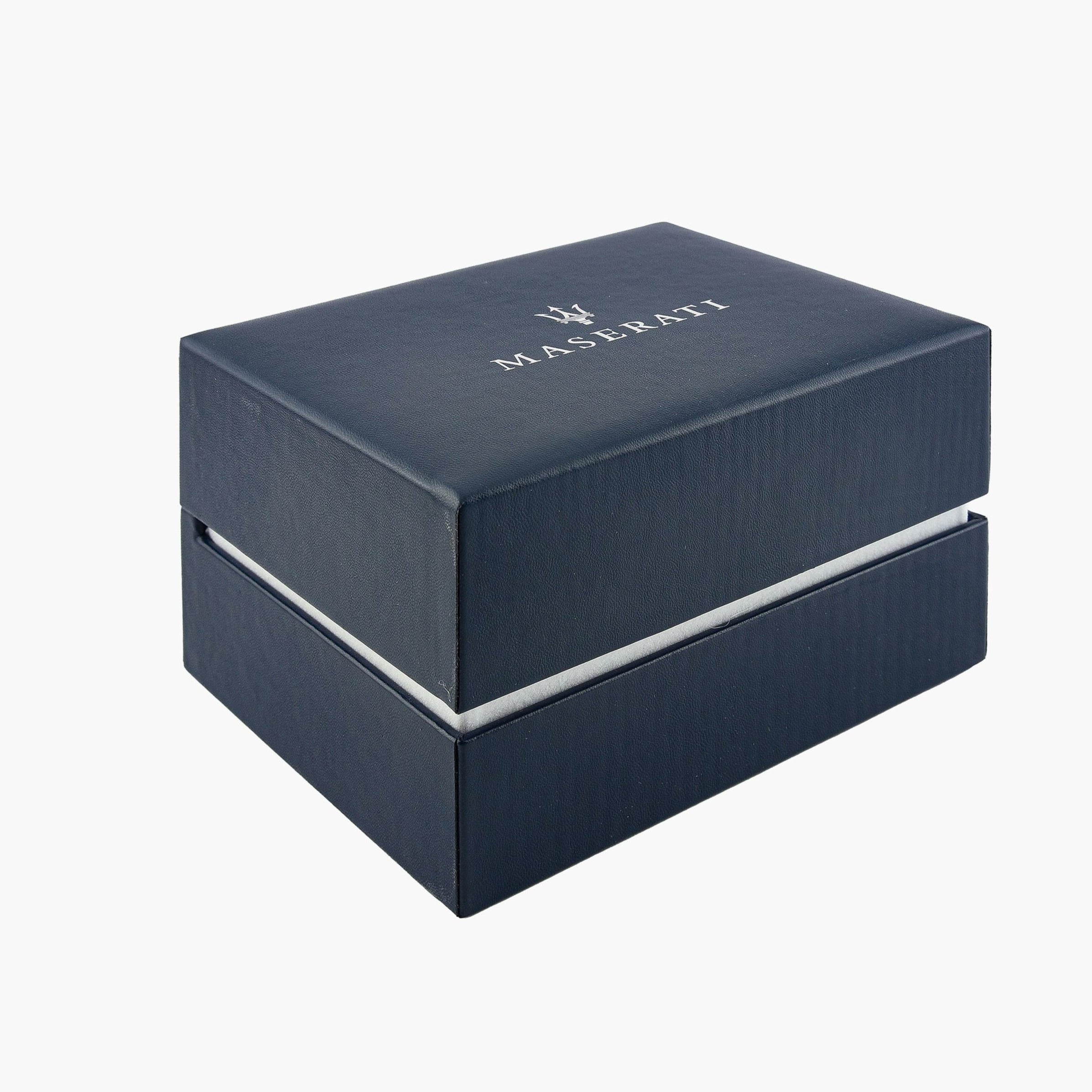 The Tridente timepieces embody all of Maserati’s technical expertise and masterful design. Exclusive and inimitable models, with a rigorous design and exceptional functions. Case Material & Finish: Stainless Steel, League, Case size: 45mm, Case thickness: 11,40, Finishing: Polished, Satin, Case Colour: Light blue, Crystal: Mineral + sapphire treatment, Strap Material: Metal , Strap Colour: Blue, Clasp type: Butterfly buckle with buttons, Water resistant: 10 atm