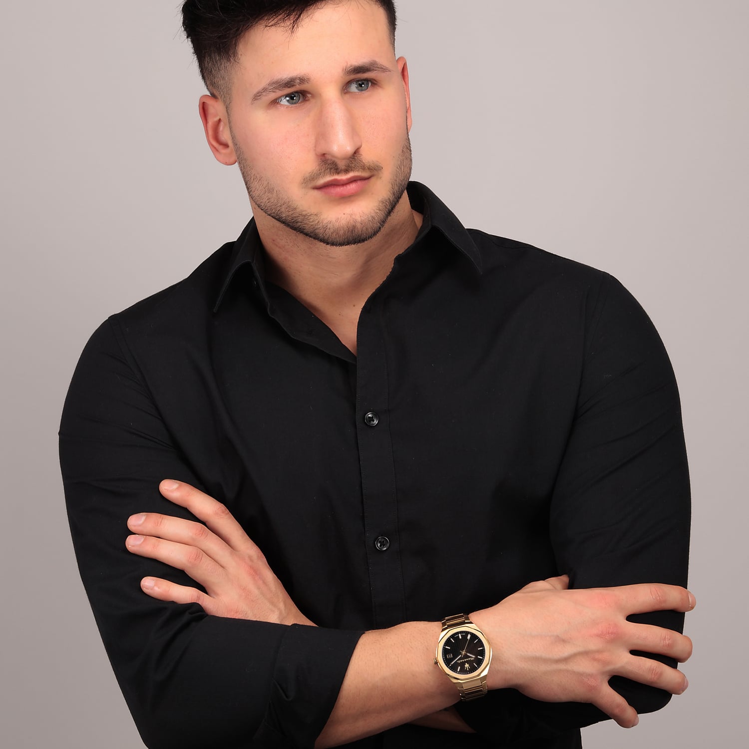 Maserati Stile Black Dial Gold Steel Strap Watch For Men - R8853142004