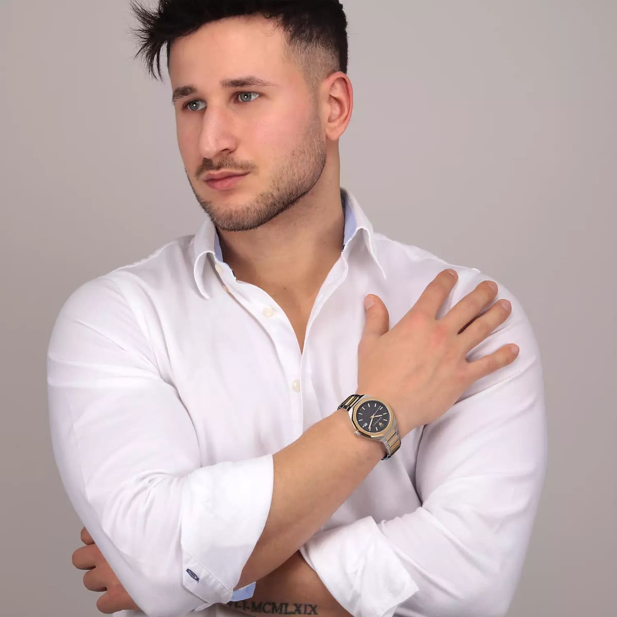 The new Maserati Stile collection plays with clean and well-defined geometry. This watch is characterized by a 45mm steel case and bezel with exposed Silver screws. The open date perfectly accompanies the silver colored dial with blue details, while the strap reflects the steel of the other elements. Screw-down crown and back, Water Resistant 10 ATM.