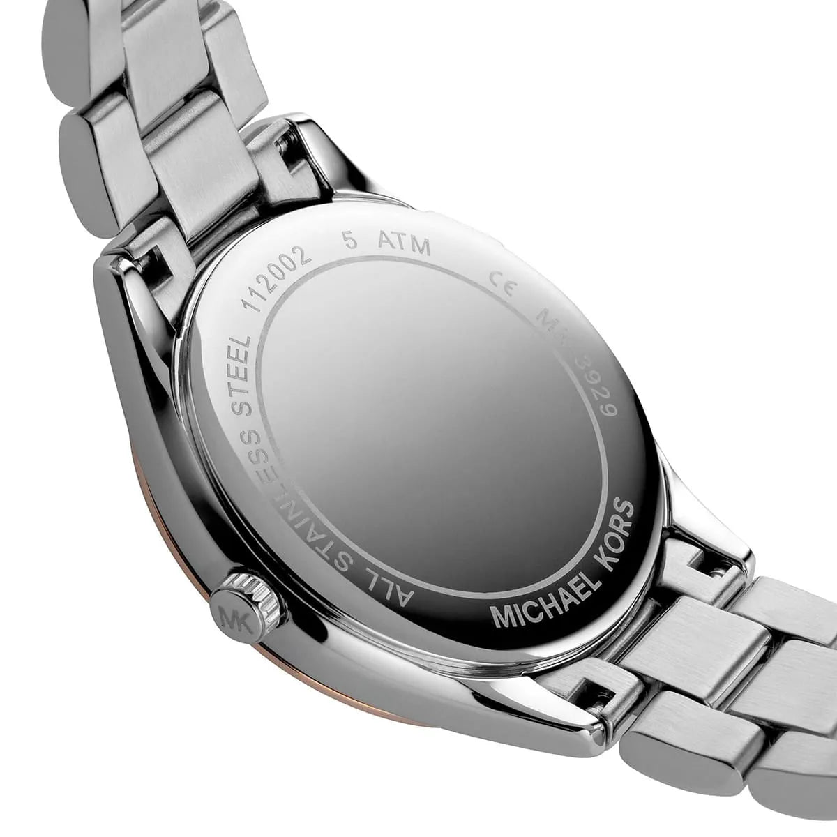 Michael Kors Watch Lauryn Ladies MK3929. A study in timeless glamour, our mini Lauryn watch is designed in gleaming two tone stainless steel with Roman numeral indexes. The bracelet strap and bezel are lined with sparkling pave crystals for a brilliant effect. Wear it as a chic and functional finish to any look.