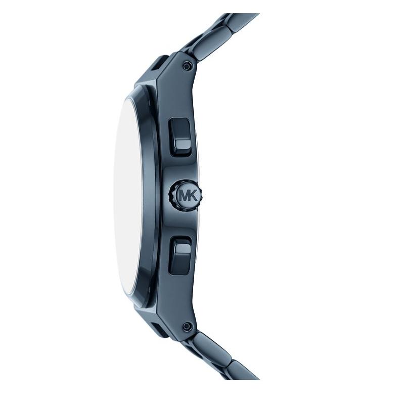 Michael Kors' 40mm Lennox watch features a blue textured dial, chronograph movement and blue stainless steel bracelet.