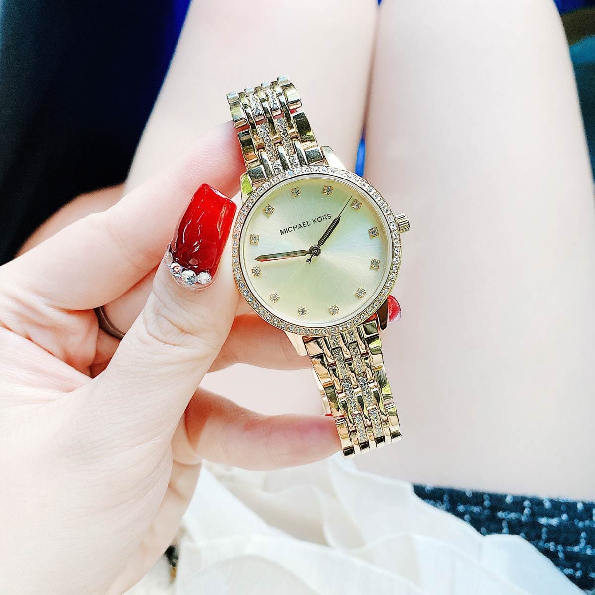 Introducing the Michael Kors Melissa Quartz watch for women, featuring a luxurious gold dial and gold steel strap. With precision quartz movement, this watch will keep you on time and on trend. Elevate your style with this stunning timepiece.